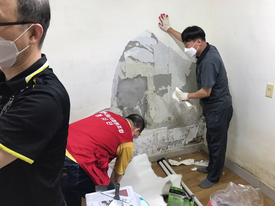 À̳¯ ºÀ»ç´Â ´ëÇÑ ³ª´®ÀÇ Çùµ¿Á¶ÇÕ ÀÌ»çÀåÀ» ºñ·ÔÇÏ¿© ÀÚ¿øºÀ»çÀÚ 5¸íÀÌ Âü¿©ÇÏ¿© ¹æ, ÁÖ¹æ, °Å½Ç µî À帶·Î ÀÎÇÑ Ä§¼öÇÇÇØ ÀÌÈÄ 2ÁÖ°£ Áö¼ÓµÈ Æø¿ì·Î ¹ß»ýÇÑ °õÆÎÀ̸¦ Á¦°ÅÇÏ°í º®Áö¸¦ ±³Ã¼ÇÏ¿´´Ù.