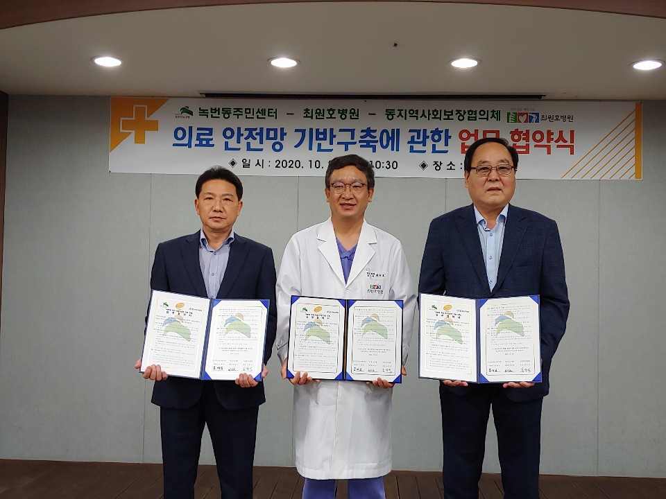 ³ì¹øµ¿(µ¿Àå ±èÀ±½Ä)Àº 2020³â 10¿ù 28ÀÏ ÃÖ¿øÈ£ º´¿ø°ú Áö¿ªÁÖ¹ÎÀÇ·á ¾ÈÀü¸ÁÀ» ±¸ÃàÇÏ´Â Çù¾àÀ» ü°áÇÏ¿´´Ù.