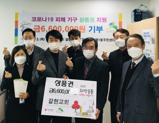 ÀºÆò±¸ °¥Çö1µ¿(µ¿Àå ¾È°æ½Ä)Àº 12¿ù 3ÀÏ Äڷγª19·Î ÀÎÇØ »ý°è°¡ ¾î·Á¿öÁø ÁֹεéÀ» À§ÇØ °¥Çö±³È¸¿¡¼ 660¸¸¿ø »ó´çÀÇ »óǰ±ÇÀ» Àü´ÞÇÏ´Â Çà»ç¸¦ ÁøÇàÇÏ¿´´Ù.