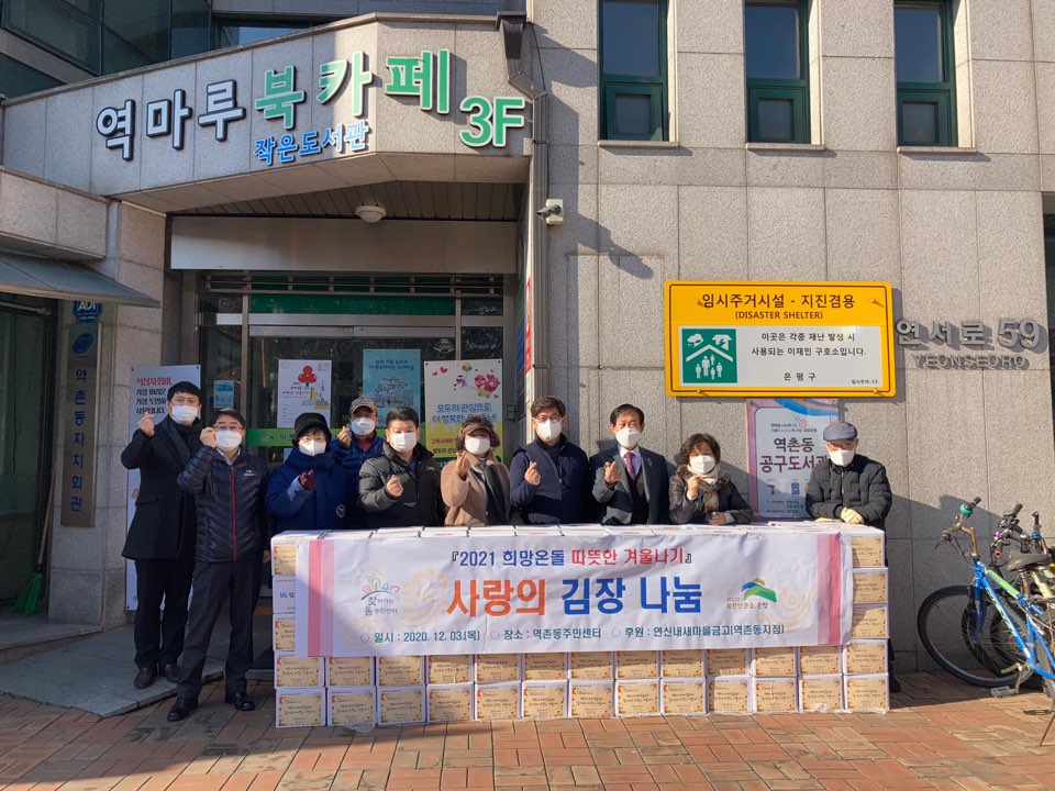 2020³â 12¿ù 3ÀÏ ¿ªÃ̵¿(µ¿Àå ±èÇöÁß)¿¡ À§Ä¡ÇÑ ¿¬½Å³»»õ¸¶À»±Ý°í(¿ªÃ̵¿ÁöÁ¡, ÀÌ»çÀå ¿ÀÁ¤¸¸)´Â ÈÆÈÆÇÑ Á¤ÀÌ ³ÑÄ¡´Â ³ª´®ÀÇ °èÀýÀ» ¸Â¾Æ »ý°è°¡ °ï¶õÇÑ ÀÌ¿ôÀÌ µû¶æÇÑ °Ü¿ïÀ» ³¯ ¼ö ÀÖµµ·Ï »ç¿ëÇØ ´Þ¶ó¸ç ±èÄ¡ 1,000kg(5kg 200¹Ú½º)À» ¿ªÃ̵¿ Áֹμ¾ÅÍ¿¡ Àü´ÞÇÏ¿´´Ù.