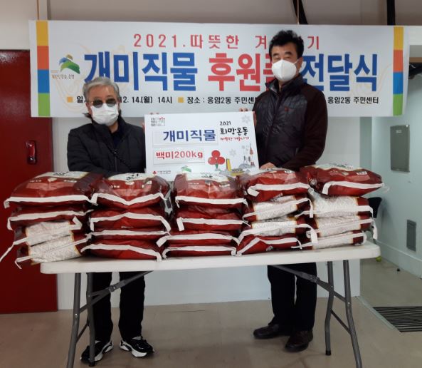 ÀÀ¾Ï2µ¿Áֹμ¾ÅÍ 1Ãþ ºÏÄ«Æä¿¡¼´Â Áö³ 12¿ù 14ÀÏ 2021.µû¶æÇÑ °Ü¿ï³ª±â ¼ºÇ° Àü´Þ½ÄÀÌ ÁøÇàµÇ¾ú´Ù. À̹ø Àü´Þ½Ä¿¡¼´Â °³¹ÌÁ÷¹°(´ëÇ¥ ÀÌÀ̹®)¿¡¼ °ü³» ¾î·Á¿î ÀÌ¿ô¿¡°Ô Àü´ÞÇØ ´Þ¶ó¸ç »ç¶ûÀÇ ¹é¹Ì 10kg 20Æ÷¸¦ ÈÄ¿øÇØ ÁÖ¾ú´Ù.