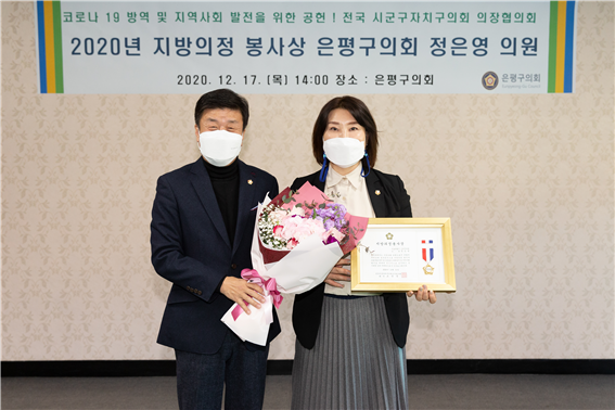 ÀºÆò±¸ÀÇȸ(ÀÇÀå ¹Ú¿ë±Ù) Á¤Àº¿µ ÀÇ¿øÀÌ Àü±¹½Ã±ºÀÚÄ¡±¸ÀÇȸÀÇÀåÇùÀÇȸ°¡ ÁÖ°üÇÏ´Â ¡®Áö¹æÀÇÁ¤ºÀ»ç»ó¡¯À» ¼ö»óÇÏ¿´´Ù. Äڷγª19·Î ÀÎÇÑ »çȸÀû °Å¸®µÎ±â¿¡ µû¶ó ½Ã»ó½ÄÀº µû·Î °³ÃÖµÇÁö ¾Ê¾Ò°í, ¹Ú¿ë±Ù ÀÇÀåÀÌ ´ëµ¶ÇÏ¿´´Ù.