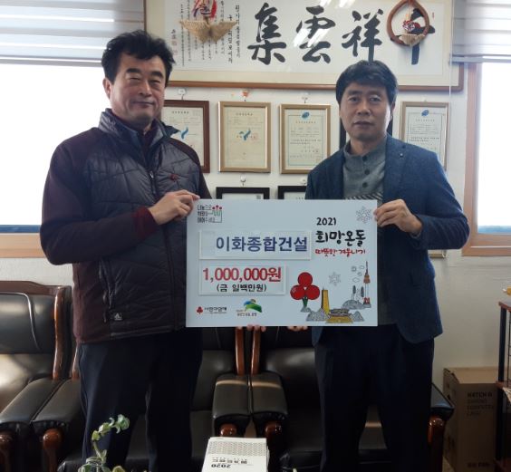 ÀÀ¾Ï2µ¿ Áֹμ¾ÅÍ(µ¿Àå Á¤¸í½Ä)´Â Áö³ 12¿ù 14ÀÏ ¿ÀÀü 10½Ã ÀÌÈÁ¾ÇհǼ³(´ëÇ¥ ¿ì°æ½Ä) »ç¹«½Ç¿¡¼ 2021. µû¶æÇÑ °Ü¿ï³ª±â ¼º±Ý Àü´Þ½ÄÀ» °¡Á³´Ù.