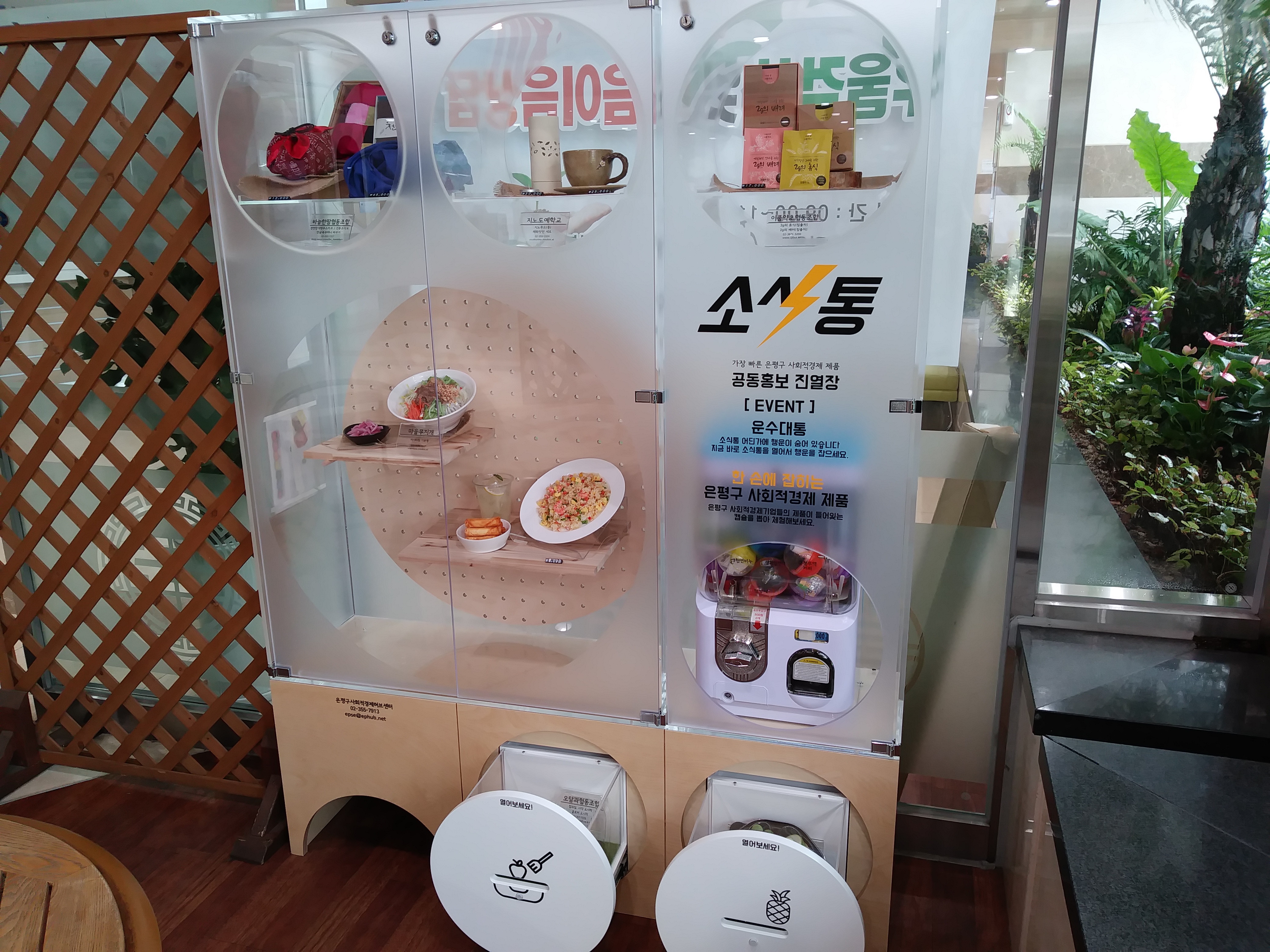 ´©¾ßÇϿ콺 ¿Ü 14°³ »ýȰÁ¦Ç°°ú ½Äǰ ±â¾÷µéÀÌ º» È«º¸ »ç¾÷¿¡ Âü¿©ÇÏ°Ô µÈ´Ù. ¼³Ä¡¿Í ¿î¿µÀ» ÁÖ°üÇÏ´Â ÀºÆò±¸¿Í »çȸÀû °æÁ¦ Çãºê¼¾ÅÍ(¼¾ÅÍÀå ¹ÚÄ¡µæ)´Â ¡°´Ü¼øÇÑ Áø¿ÀåÀÌÁö¸¸ ¼Ò½ÄÅëÀ̶ó´Â À̸§¿¡ »çȸÀû°æÁ¦±â¾÷°ú Áֹεé, ±×¸®°í ±¸Ã»ÀÌ ¼·Î ¼ÒÅëÇÏ´Â ±âȸ°¡ µÇ±æ ¹Ù¶ó´Â ¸¶À½À» ´ã¾Ò´Ù¡±¸ç, ¡°Áø¿Àå¿¡ Á¦Ç° ÆÇ¸Åó Á¤º¸¸¦ ´ã¾ÒÀ¸´Ï ¸¹Àº ÀÌ¿ë ºÎŹµå¸°´Ù¡±°í ¹àÇû´Ù.