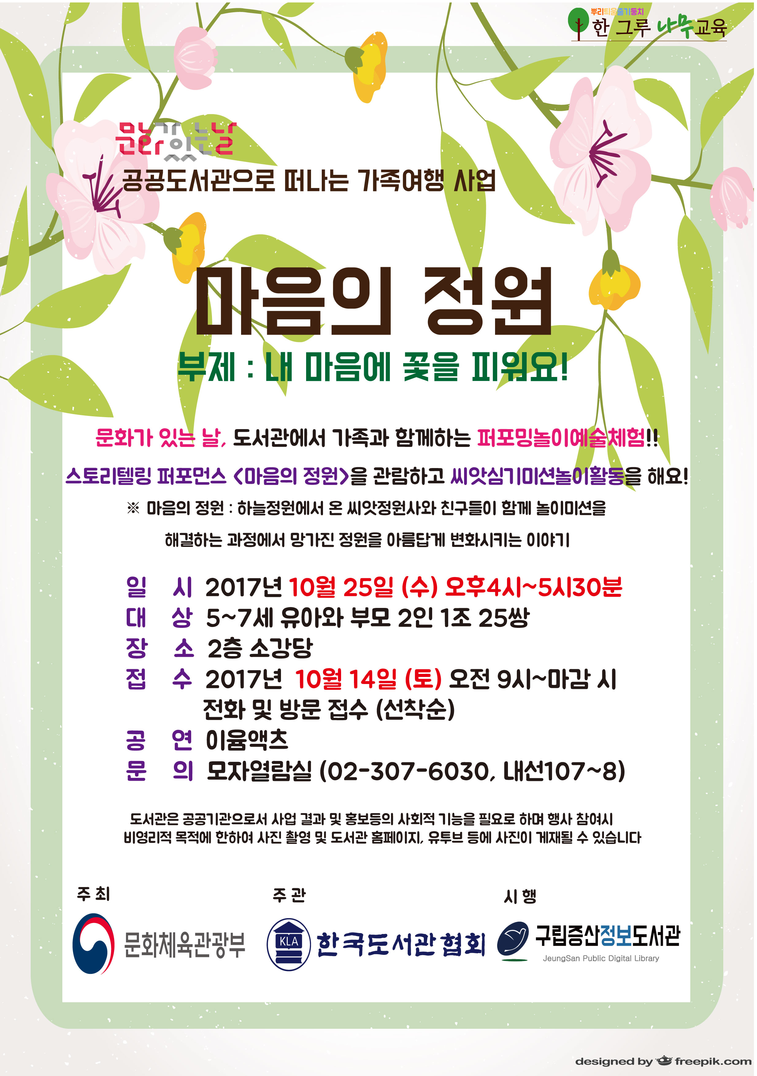 ±¸¸³Áõ»êÁ¤º¸µµ¼°üÀº ¹®ÈüÀ°°ü±¤ºÎ°¡ ÁÖÃÖÇϰí Çѱ¹µµ¼°üÇùȸ°¡ ÁÖ°üÇÏ´Â ¡®¹®È°¡ ÀÖ´Â ³¯, °ø°øµµ¼°üÀ¸·Î ¶°³ª´Â °¡Á· ¿©Çà »ç¾÷¡¯ ½ÃÇà ±â°üÀ¸·Î ¼±Á¤µÇ¾î À¯¾Æ¿Í ºÎ¸ð ´ë»ó ÆÛÆ÷¹Ö³îÀÌ¿¹¼úüÇè ÇÁ·Î±×·¥ <¸¶À½ÀÇ Á¤¿ø>À» °³ÃÖÇÑ´Ù.