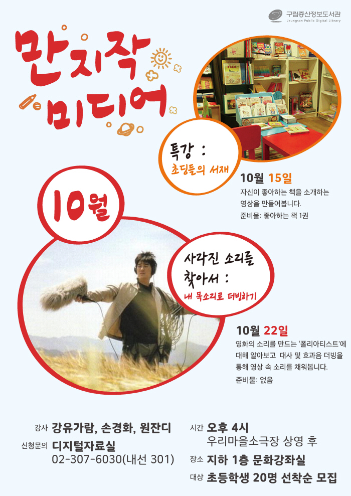¿µ»óÁ¦ÀÛ¿¡ °ü·ÃµÈ Á÷¾÷À» üÇèÇØº¸°í ´Ù¾çÇÑ Á¦ÀÛȰµ¿ÀÇ Áñ°Å¿òµµ ´À³¥ ¼ö ÀÖ´Â ¡®»ç¶óÁø ¼Ò¸®¸¦ ã¾Æ¼¡¯ ÇÁ·Î±×·¥¿¡ ¾î¸°ÀÌ ÀÌ¿ëÀÚµéÀÇ ¸¹Àº Âü¿©¿Í °ü½ÉÀ» ¹Ù¶õ´Ù.