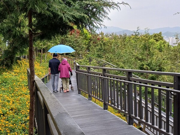 ºÀ»ê Æ÷Å侯ÀÌ·£µå ¸ð½À¾Æµé°ú ÇÔ²² ´ÙÁ¤ÇÏ°Ô ¹«Àå¾Ö ½£±æÀ» °É¾î°¡´Â ¿©ÀÚ ¾î¸£½Å¿¡°Ô ¸»À» °É¾ú´Ù. ÈÙü¾î¸¦ ¹Ð¸ç ³»·Á°¡´Â ¾î¸£½ÅÀÇ °ÉÀ½¿¡ ÈûÀÌ µé¾î ÀÖ´Ù. ³ªÀ̸¦ ¹°¾ú´õ´Ï ĮĮÇÑ ¸ñ¼Ò¸®·Î ¿ÃÇØ 90À̶ó¸ç ȯÈ÷ ¿ô´Â´Ù. ±× °ç¿¡¼ °°ÀÌ ¿ô´Â ¾ÆµéÀ» º¸¸é¼ Âü ºÎ·´´Ù´Â »ý°¢ÀÌ µç´Ù. ¾î¸Ó´Ï°¡ °Ç°ÇÑ »îÀ» »ì¾Æ°£´Ù´Â °Ô ¾ó¸¶³ª Å« ÃູÀΰ¡.