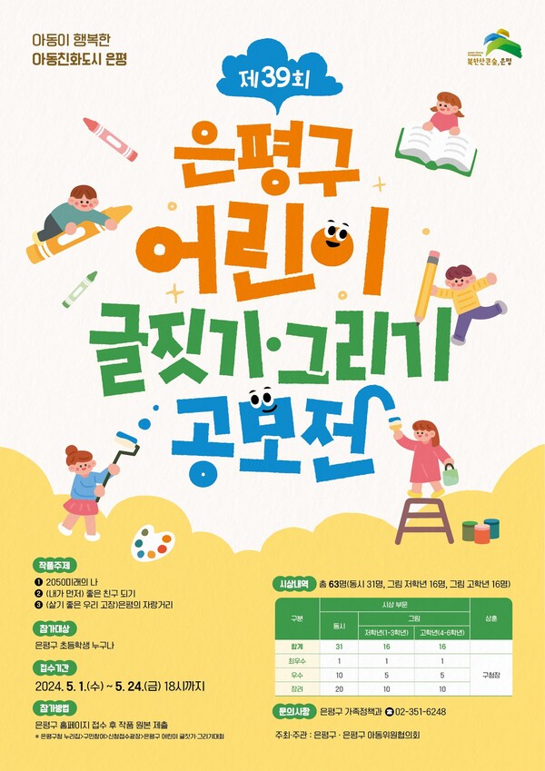 [21ÀºÆò´º½º=±è¼öÁ¤ ±âÀÚ] ÀºÆò±¸(±¸Ã»Àå ±è¹Ì°æ)´Â 5¿ù ¾î¸°ÀÌÁÖ°£À» ¸Â¾Æ ÃʵîÇлýÀ» ´ë»óÀ¸·Î ¡®Á¦39ȸ ÀºÆò±¸ ¾î¸°ÀÌ ±ÛÁþ±â¡¤±×¸®±â ´ëȸ¡¯¸¦ ¿Â¶óÀÎÀ¸·Î °³ÃÖÇÑ´Ù°í 26ÀÏ ¹àÇû´Ù.