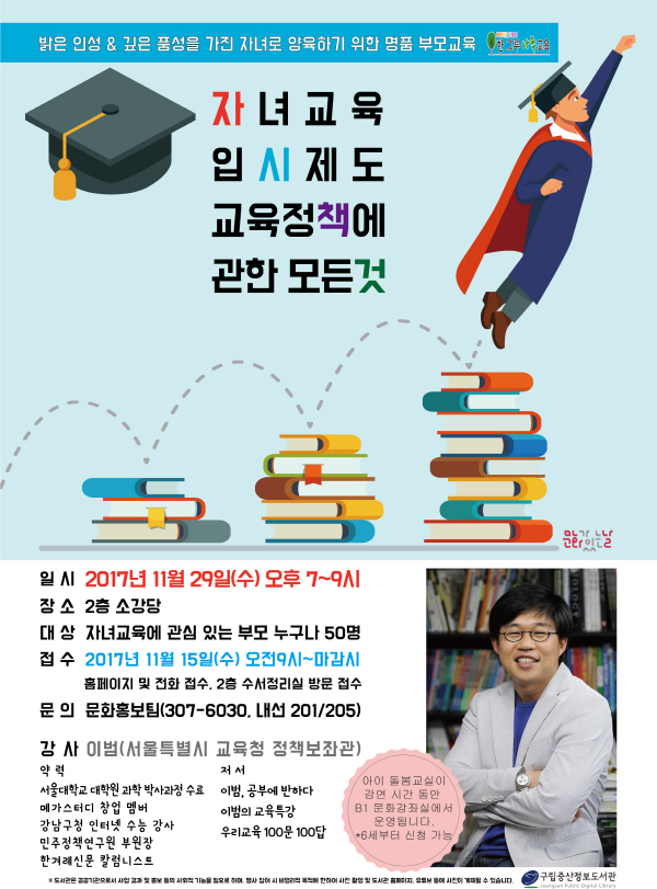 ¿À´Â 11¿ù 29ÀÏ¿¡´Â ±³À°Æò·Ð°¡ À̹üÀÌ ¡®Àڳ౳À° ÀÔ½ÃÁ¦µµ ±³À°Á¤Ã¥¿¡ °üÇÑ ¸ðµç °Í¡¯À» ÁÖÁ¦·Î °¿¬ÇÒ ¿¹Á¤ÀÌ´Ù. À̹üÀº ÀüÁ÷ ½ºÅ¸°»ç Ãâ½ÅÀ¸·Î ¸Þ°¡½ºÅ͵ðÀÇ Ã¢¸³¸â¹öÀÌ´Ù. ÇöÀç´Â ¼¿ïƯº°½Ã ±³À°Ã» Á¤Ã¥º¸Á°üÀ» ¸Ã°í ÀÖÀ¸¸ç ½Ã»çIN, ÇѰܷ¹ µî¿¡¼ Ä®·³¸®½ºÆ®·Îµµ Ȱµ¿ÇÏ´Â µî ±³À°Æò·Ð°¡·Î¼ Ȱ¹ßÇÑ Çຸ¸¦ À̾°í ÀÖ´Ù. Àú¼·Î´Â ¡ºÀ̹ü, °øºÎ¿¡ ÚãÇÏ´Ù¡»¡ºÀ̹üÀÇ ±³À°Æ¯°¡»¡º¿ì¸®±³À° 100¹® 100´ä¡»µîÀÌ ÀÖ´Ù.